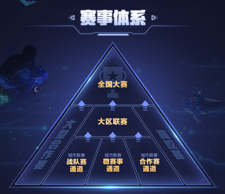 全国大赛是在原有高校联赛、城市联赛、合作赛的基础上进行的“最终选拔”,秉承着可以优中选优,找到最强的“路人王”,为职业电竞建立更加清晰、有序可循的人才输送体系,让“全民电竞”的理念有了实践路径。